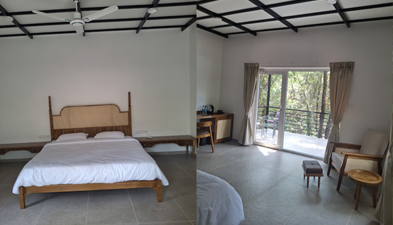 This place is truly incredible. The surroundings are stunning and very pleasant. They have a large area filled with a variety of trees and even have a beekeeping setup. We stayed for a night, and the dormitory was very spacious, easily accommodating 20-25 people. For couples and small groups, there are private huts available. With 3-4 swimming pools, there was plenty of space for everyone, and we had access to the pools all night. The staff were extremely friendly and respected our privacy. The highlight of our stay was the food, which was included in the package. We enjoyed delicious meals, including an authentic Goan fish thali for lunch with fresh fish. The entire area is well maintained and very clean, and they offer various activities like ziplining to enjoy.